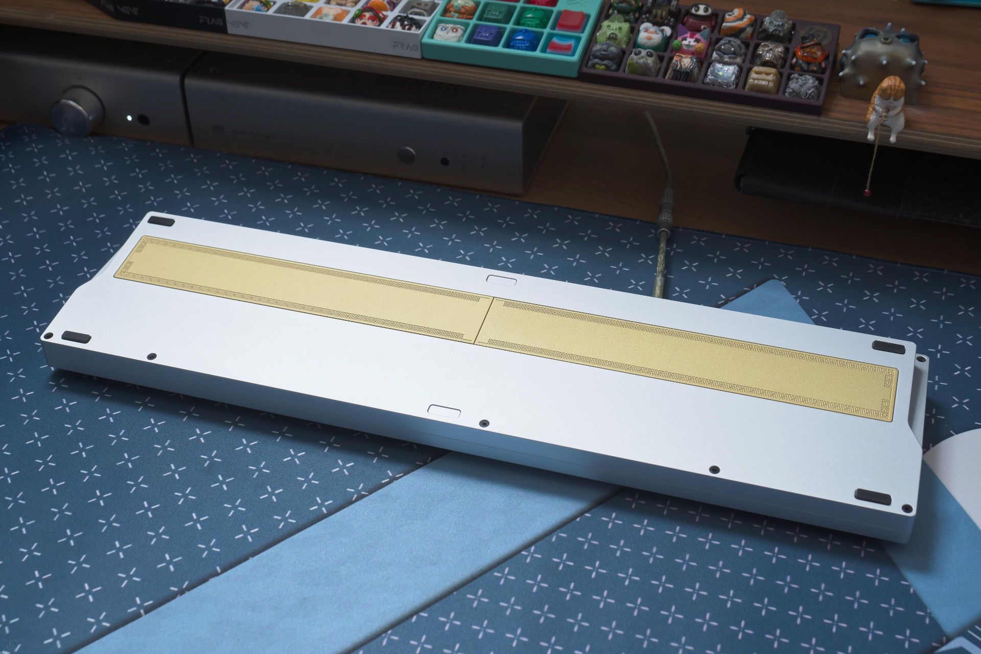 La caratteristica principale della board è sicuramente il layout: si tratta di una 100% senza i tasti funzione e questo sicuramente la distingue dalla concorrenza. E colpisce sicuramente il generoso peso (passante) in ottone che corre lungo tutto il bottom.